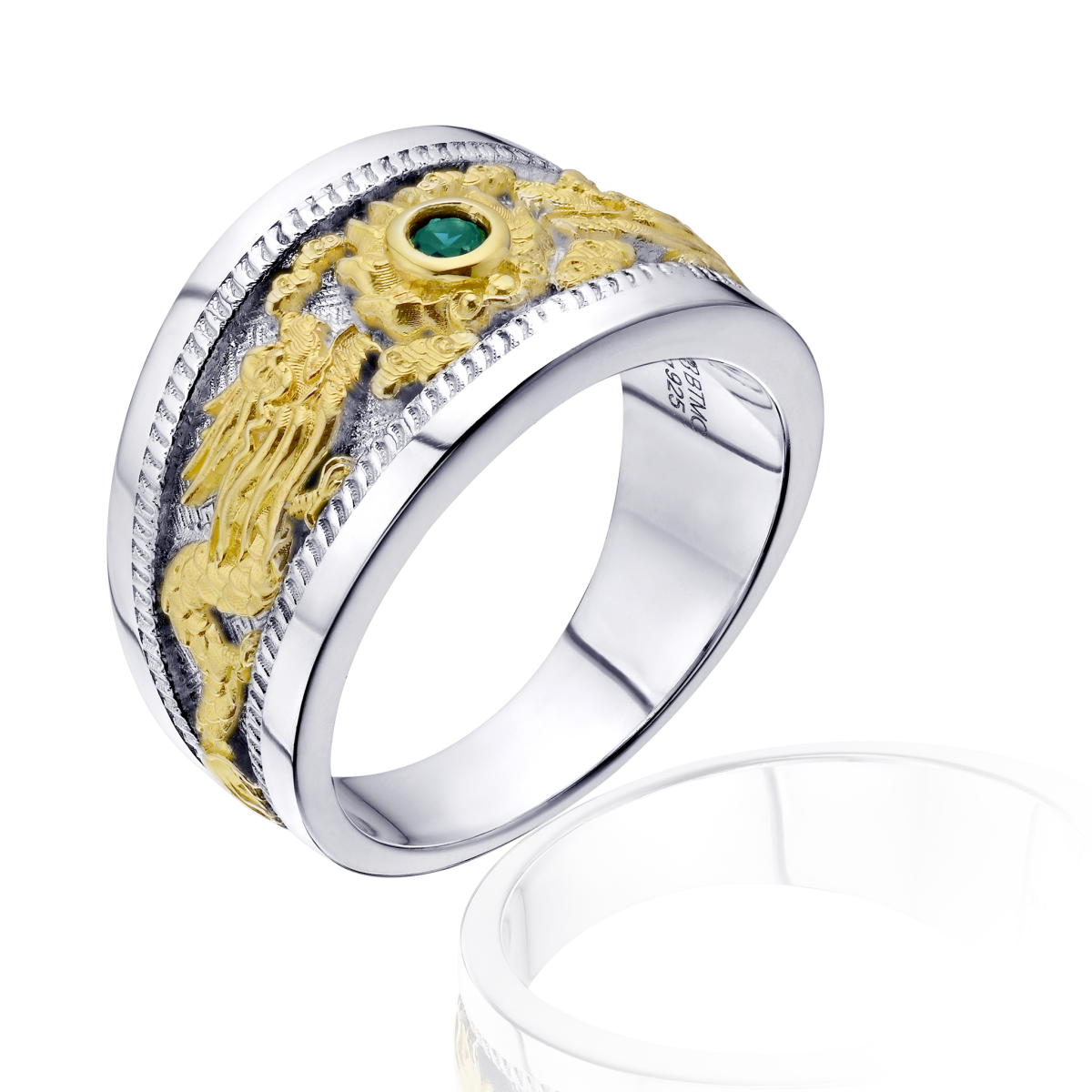 Bạc Rồng Thăng Long Gắn Đá Emerald