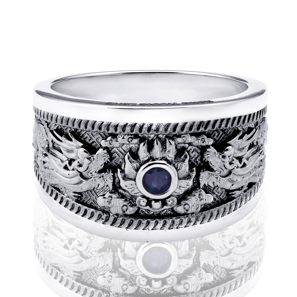 Bạc Rồng Thăng Long Gắn Đá Sapphire