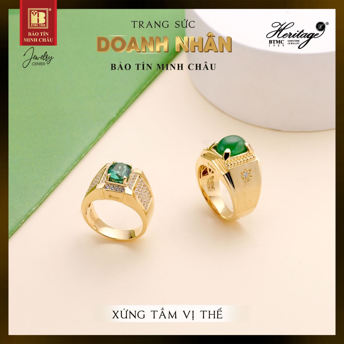 Nhẫn nam vàng 18k gắn đá emerald