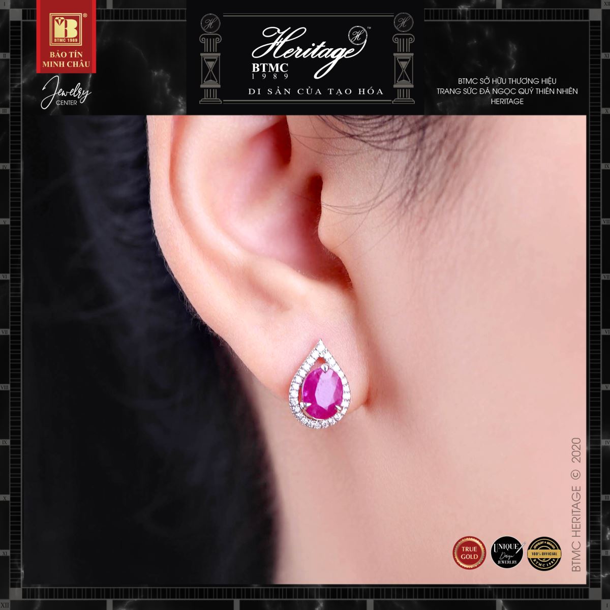 Hoa tai vàng trắng 18k gắn đá ruby kết kim cương