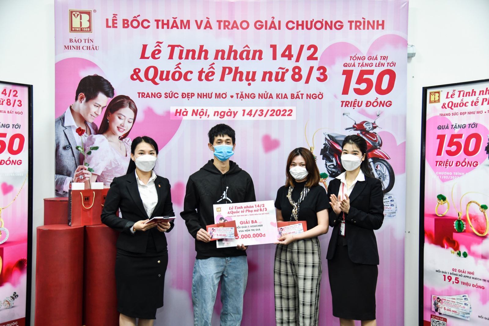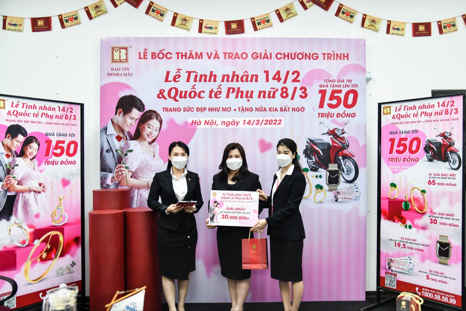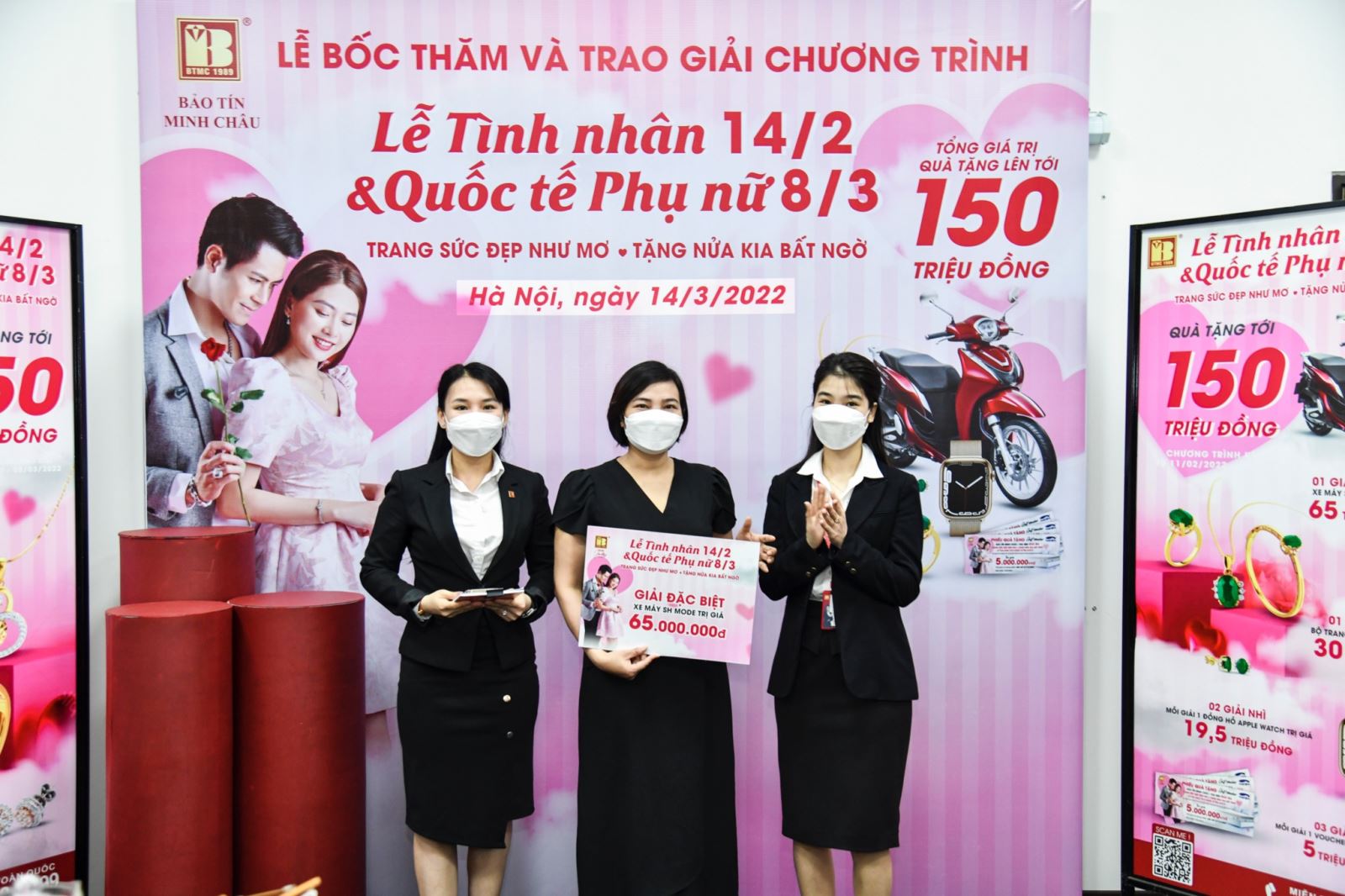 BẢO TÍN MINH CHÂU TRAO 150 TRIỆU ĐỒNG CHO KHÁCH TRÚNG THƯỞNG DỊP VALENTINE VÀ 8/3