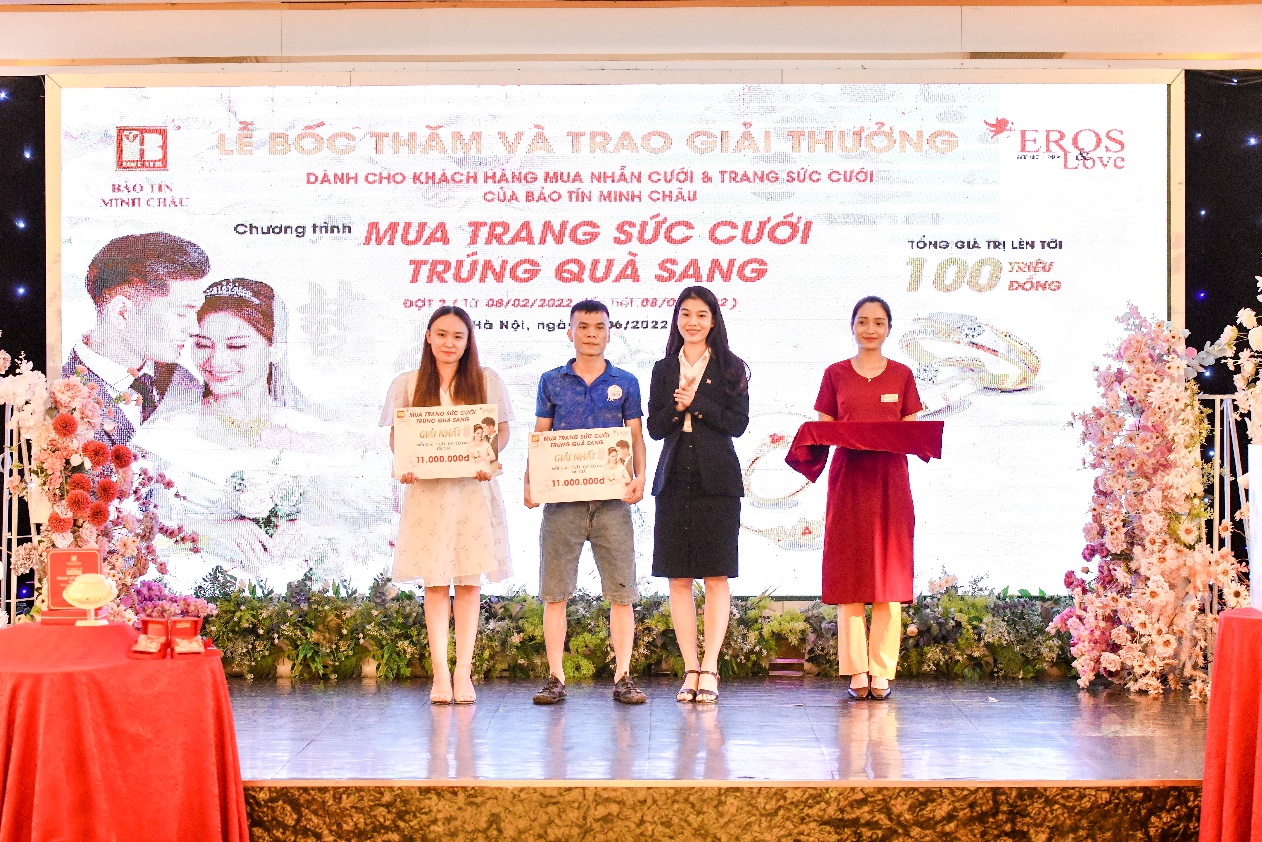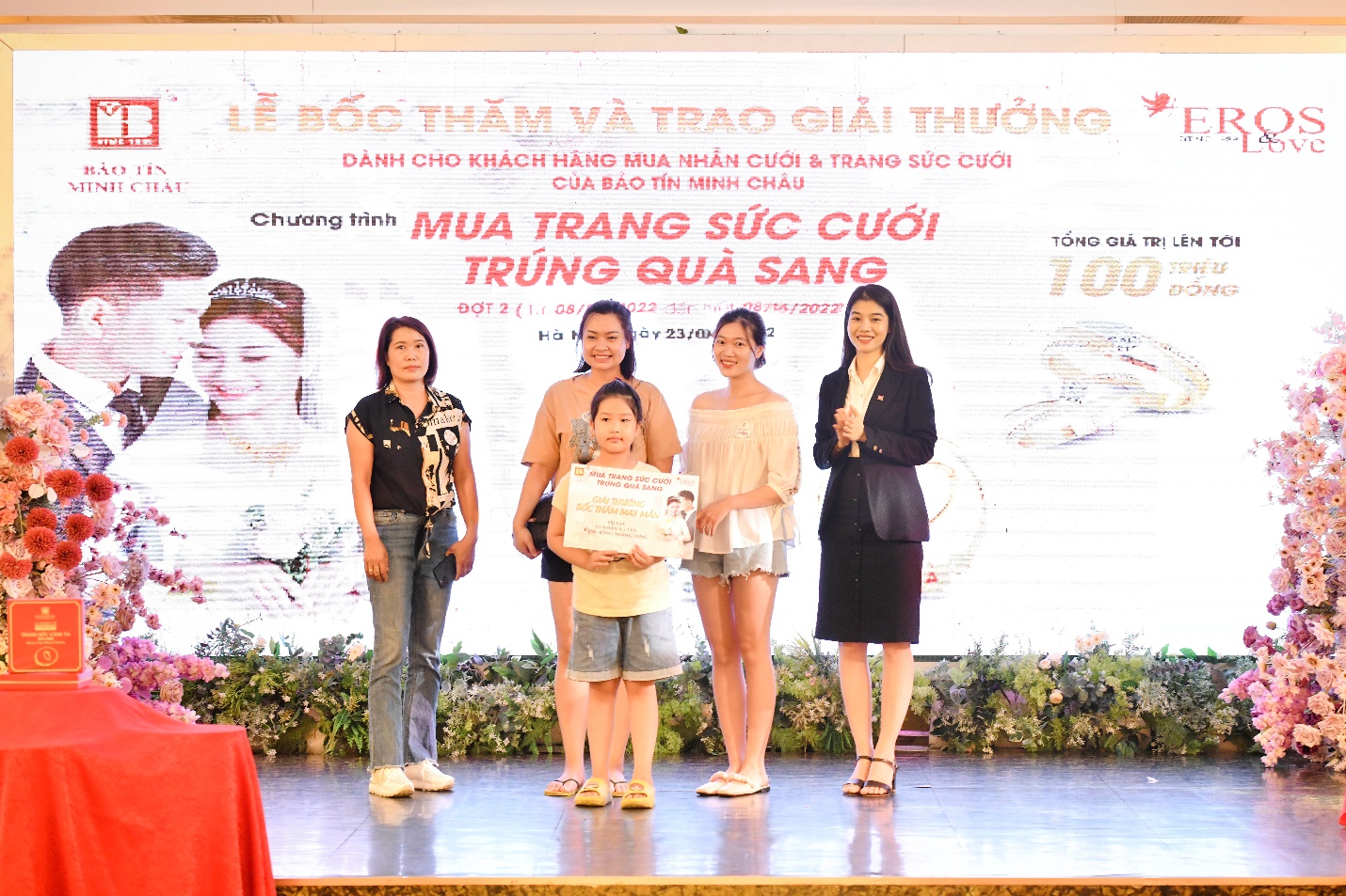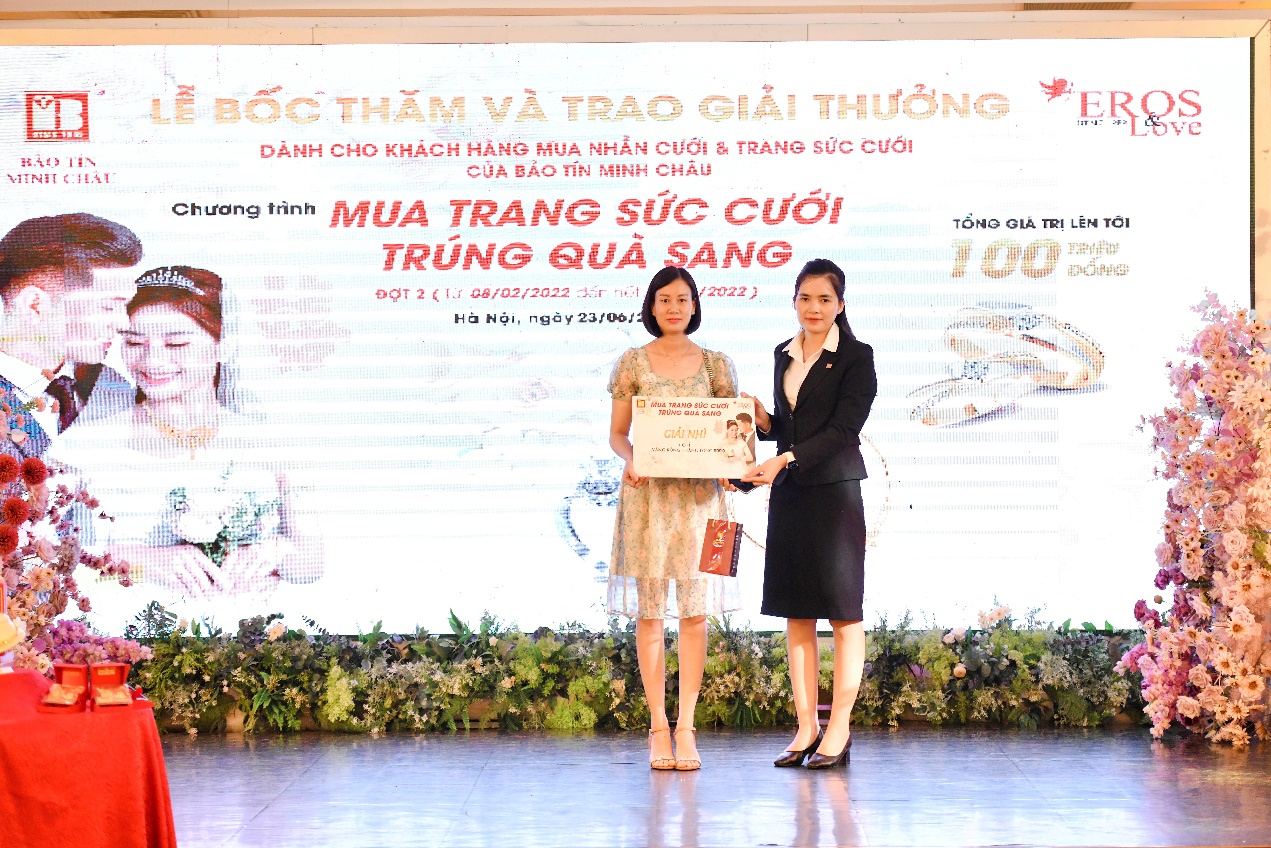 Tối ngày 23/6/2022, công ty Bảo Tín Minh Châu đã tổ chức lễ bốc thăm và trao thưởng tới 100 triệu đồng cho các khách hàng trúng thưởng “Mua trang sức cưới - Trúng quà sang” đợt 2, tại Trống Đồng, 72 Trần Đăng Ninh, Cầu Giấy, Hà Nội.