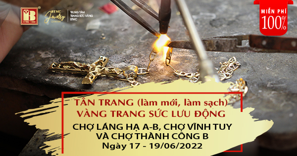 Quý khách hàng có trang sức bị xỉn màu, cũ xước, biến dạng móp méo, gãy đứt, hỏng khóa, long rơi ngọc… xin mời mang tới các địa điểm trên vào khung giờ thông báo để được tân trang. Sản phẩm sẽ sáng đẹp như mới, có thể lấy ngay. Đặc biệt, BTMC sử dụng máy móc công nghệ hiện đại, thợ kim hoàn tay nghề cao, không làm biến dạng/ảnh hưởng tới chất lượng vàng trang sức cũ của quý khách.