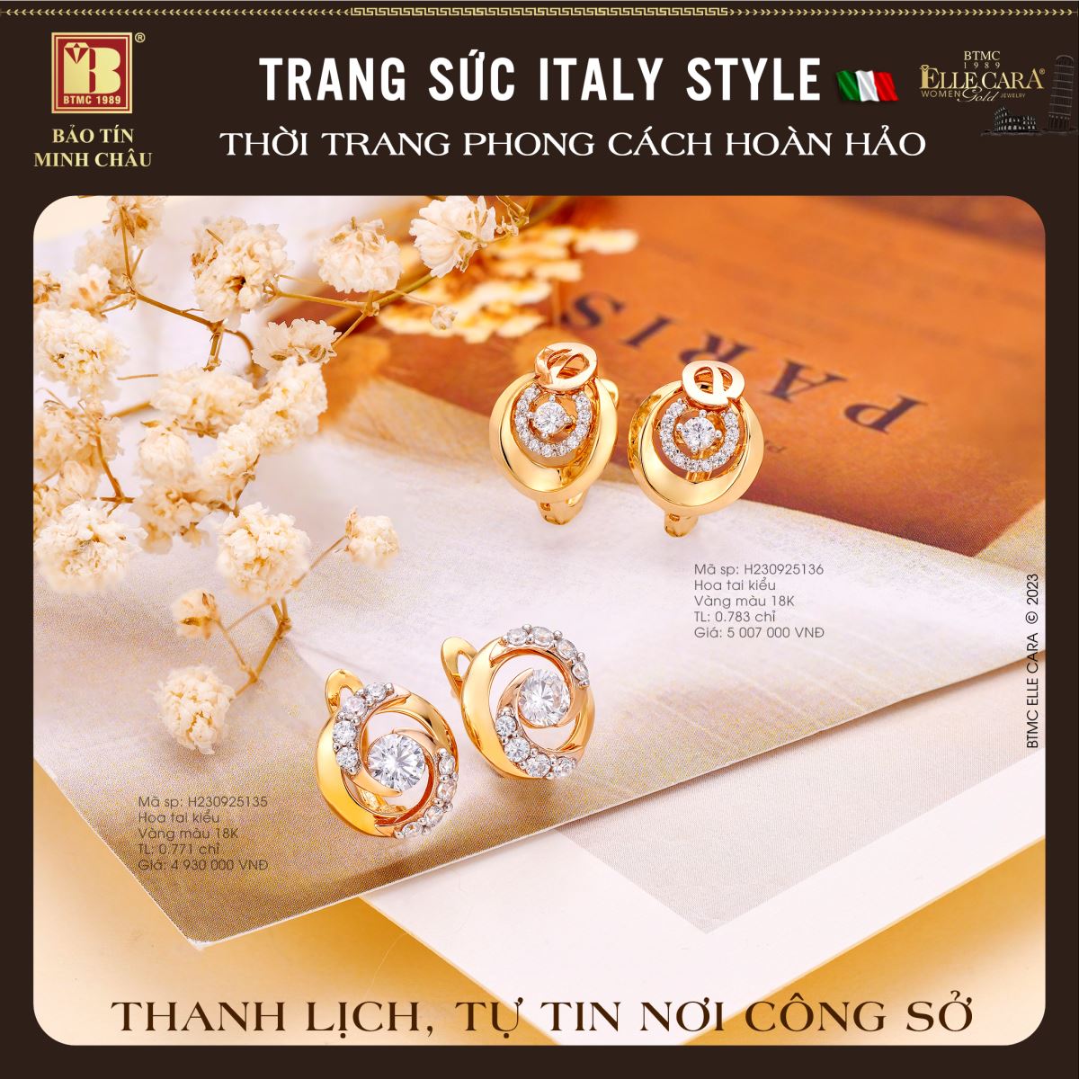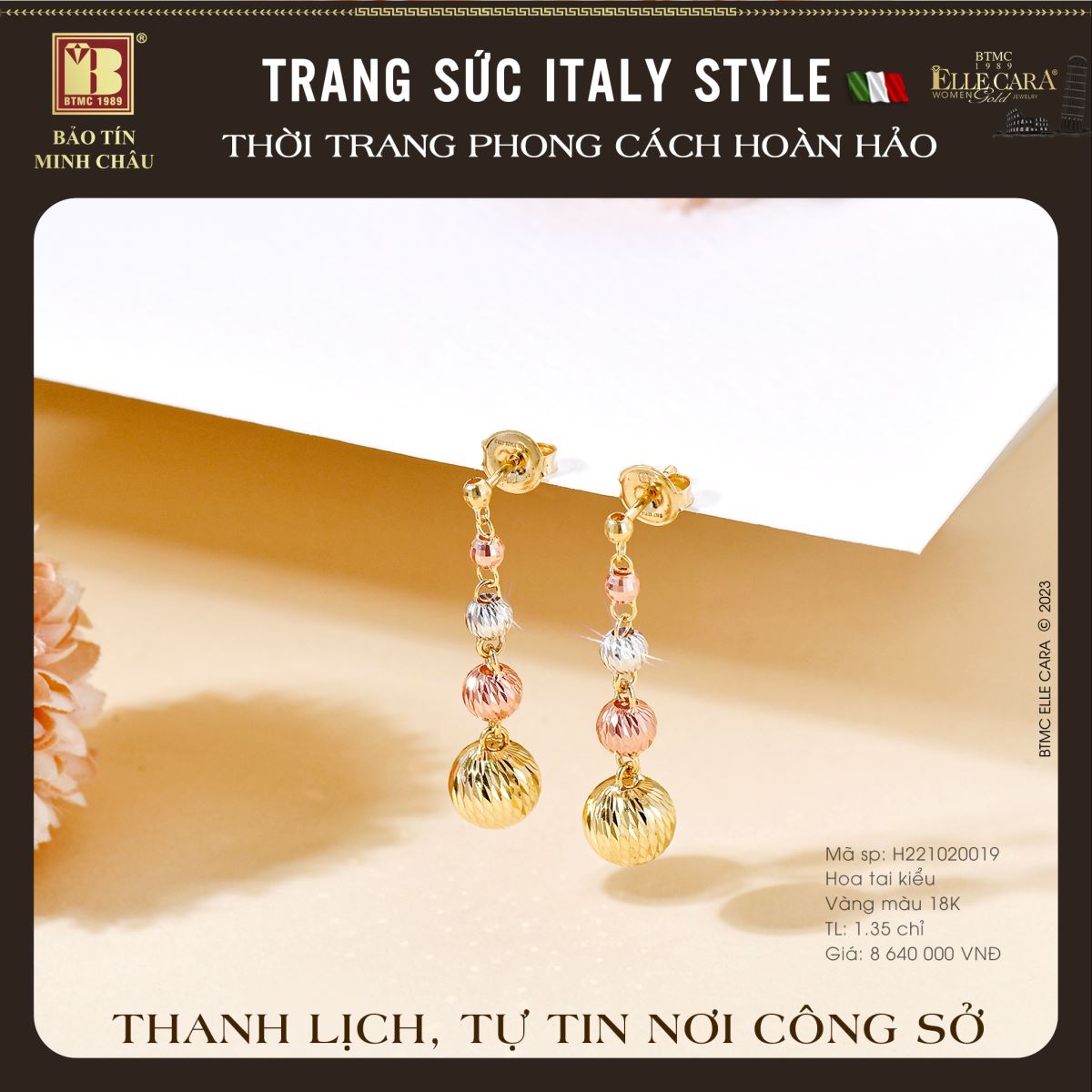 Tháng 6 này nhận ngay ưu đãi đặc quyền lên tới 30% và quà tặng của BTMC… Rủ bạn thân "gom đơn" để áp dụng thêm nhiều ưu đãi bạn nhé! Hãy tự tin tỏa sáng với những mẫu thiết kế độc đáo và trẻ trung kết hợp chất liệu cao cấp như vàng màu 14k, vàng màu 18k… tất cả cùng tạo nên BST Hoa tai Elle.