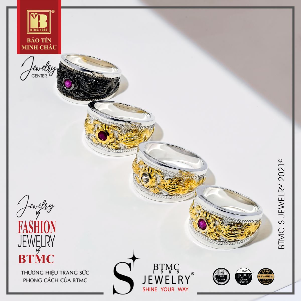 Bộ sưu tập nhẫn mới được khắc họa nổi hình tượng rồng Thăng Long mang biểu tượng văn hóa và tâm linh của Thăng Long Hà Nội nghìn năm văn hiến. Bạc Rồng Thăng Long còn được nạm đá quý phong thủy giàu tính thẩm mỹ mang nét đẹp sang trọng. Đá ngọc quý tự nhiên hội tụ vẻ đẹp, tài khí và tinh hoa đất trời, mang lại may mắn và vẻ đẹp rạng ngời cho người sở hữu.