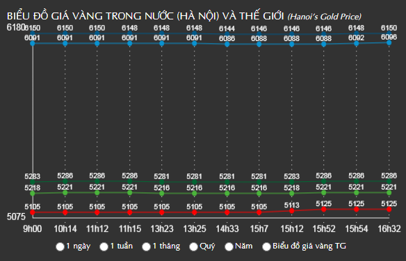 Tại thời điểm 9h00 sáng, giá vàng thế giới giao dịch tại: 51,05 triệu đồng/lượng.