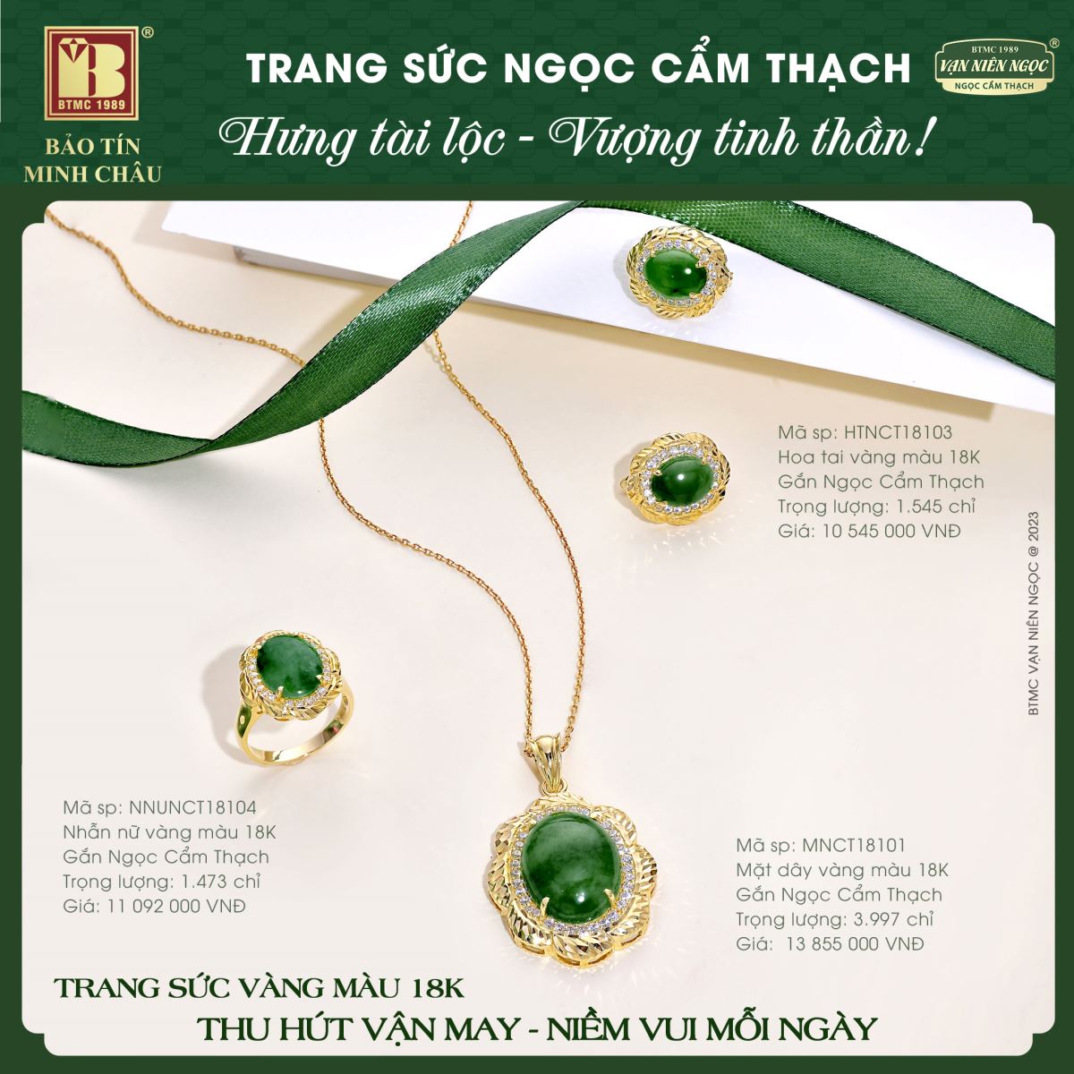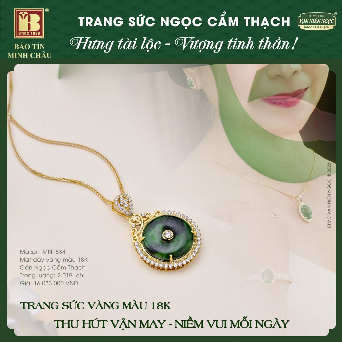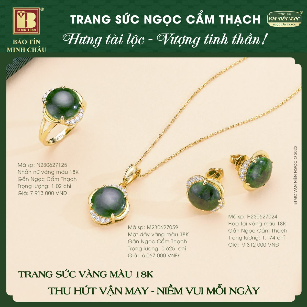 🍃 Dịu dàng, thanh lịch nhưng vẫn phảng phất nét yêu kiều, quý phái, cuốn hút mọi ánh nhìn… Trang sức Ngọc Cẩm Thạch không chỉ tôn vinh vẻ đức hạnh, sự duyên dáng, thanh cao ở phái đẹp mà còn mang lại sức khỏe, bình an, tài lộc cho chủ sở hữu.