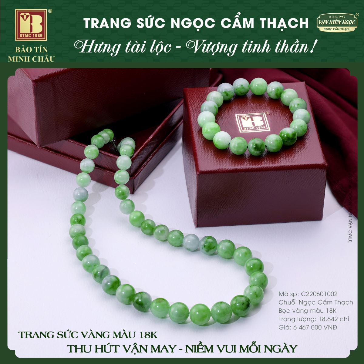 Ngọc Cẩm Thạch không chỉ tôn vinh vẻ đẹp sang quý mà còn mang lại sức khỏe, bình an và tài lộc cho chủ sở hữu.