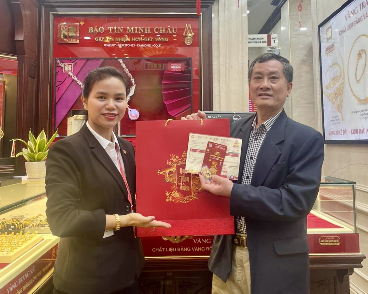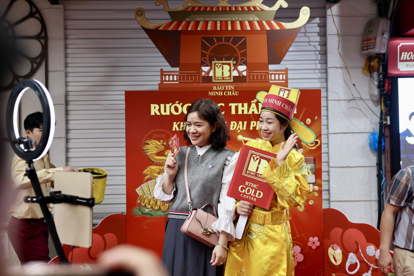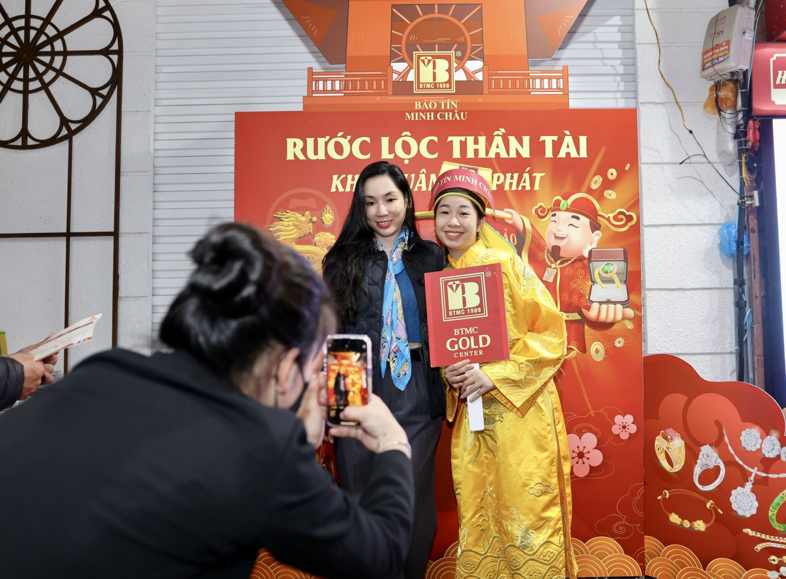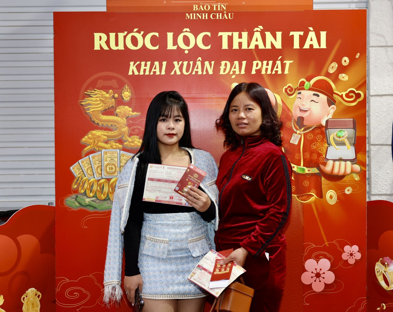 Khách hàng vui tươi chụp ảnh check in tại các cơ sở kinh doang của Bảo Tín Minh Châu