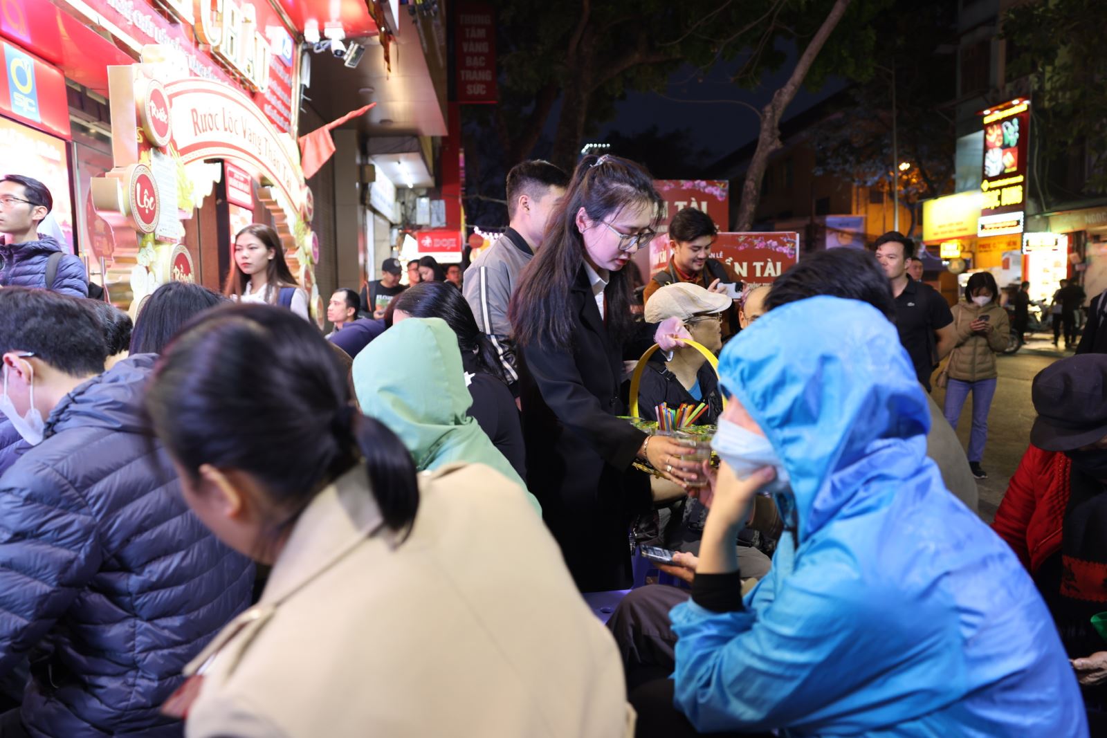 Nhân viên mặc trang phục  Thần tài mang nước, túi hạt rang, trái cây.. mời khách hàng