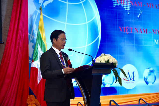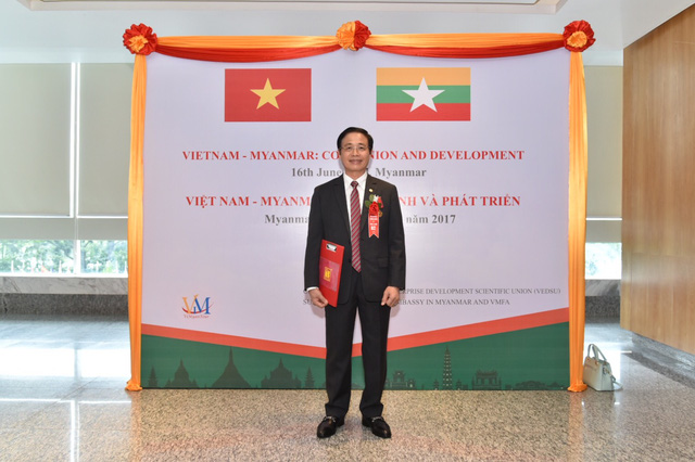 Doanh nhân văn hóa - Tổng Giám đốc Vũ Minh Châu lên phát biểu trong chương trình “Việt Nam – Myanmar đồng hành và phát triển” tại Myanmar.