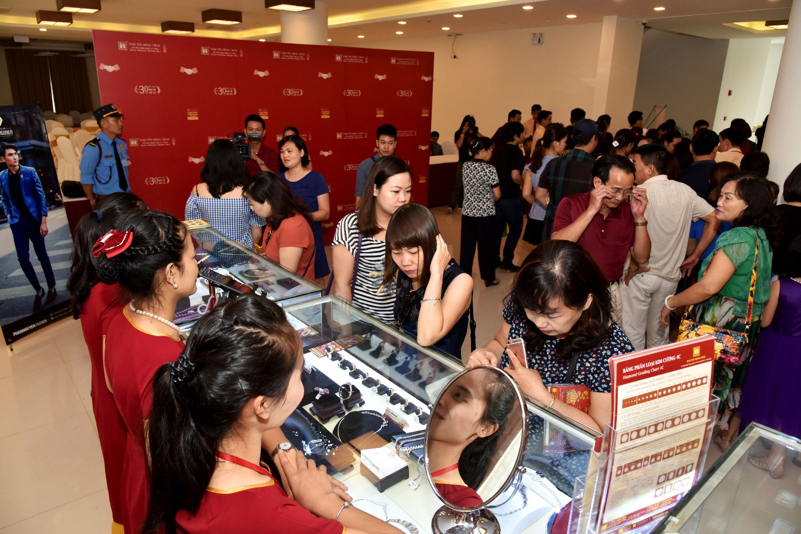 Không chỉ thỏa mãn những giải đáp xung quanh việc giao dịch trao đổi vàng Rồng Thăng Long, các khách hàng còn được chiêm ngưỡng các bộ trang sức đẹp sang, tinh tế cùng 6 bản vị vàng Rồng Thăng Long với những ý nghĩa may mắn riêng cho từng bản vị. Đặc biệt là chương trình bốc thăm may mắn trúng 8 chỉ Nhẫn tròn trơn Vàng Rồng Thăng Long đã tìm được các chủ nhân may mắn: