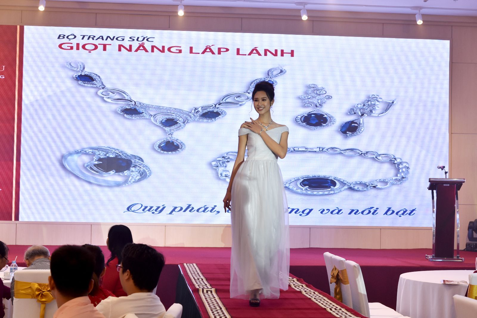 Đặc biệt, chương trình còn tri ân khách hàng và tạo không khí vui vẻ, hấp dẫn với màn trình diễn những bộ trang sức đẹp sang, cuốn hút và trò chơi bốc thăm may mắn trúng quà thưởng tổng là 8 chỉ nhẫn tròn trơn thế Vàng rồng Thăng Long cho 10 khách hàng may mắn nhất tại hội nghị Vàng Trang sức.