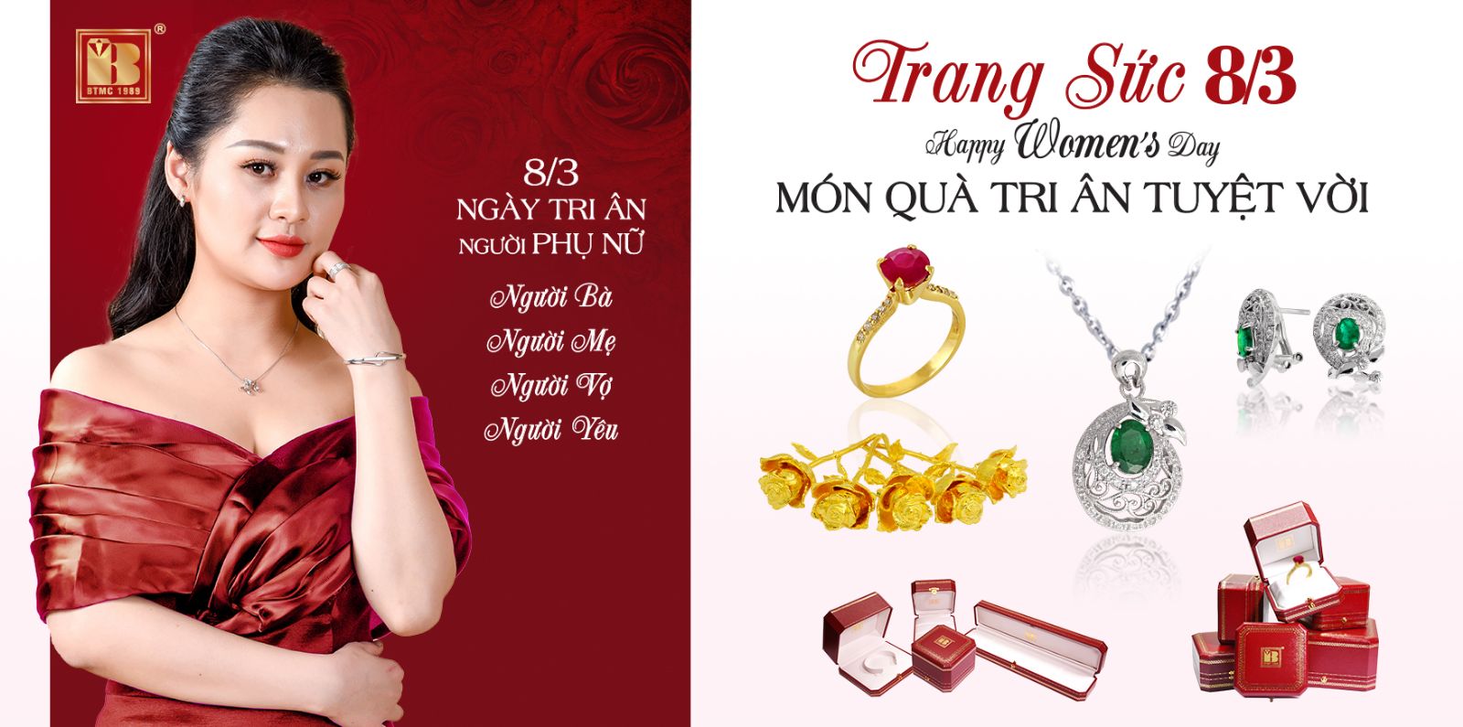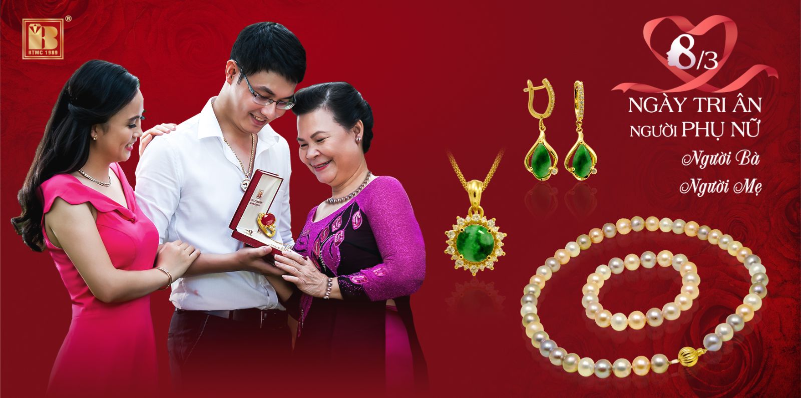 Nhân dịp 8.3 năm nay, nhằm giúp các bà, các mẹ và những cô gái đang yêu và chưa yêu luôn tỏa sáng, rạng ngời, đồng thời giúp phái mạnh dễ dàng lựa chọn được món quà ưng ý biếu tặng một nửa thế giới yêu thương, Bảo Tín Minh Châu đã ra mắt rất nhiều sản phẩm trang sức làm Món quà tri ân đậm nghĩa ân tình với nhiều món/bộ trang sức ngọc quý đính trên vàng ta 24k, vàng tây chế tác tinh xảo, mẫu mã đa dạng; nhiều kích cỡ, kiểu dáng, sắc màu đá; nhiều mức giá, giúp tôn vinh nét đẹp phúc hậu, trang nhã của những người bà, người mẹ - những người phụ nữ đứng tuổi. Vì thế những món trang sức này thường được những người con/cháu hiếu thuận lựa chọn biếu bà và mẹ kính yêu trong dịp tôn vinh phái đẹp 8.3.