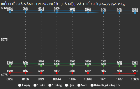 Thời điểm 15h39 đồ thị nhích nhẹ lên mốc: 67,36 – 67,94 triệu đồng/lượng (MV-BR), tăng 10.000 đồng/lượng ở cả 2 chiều mua vào và bán ra so với thời điểm trước đó.