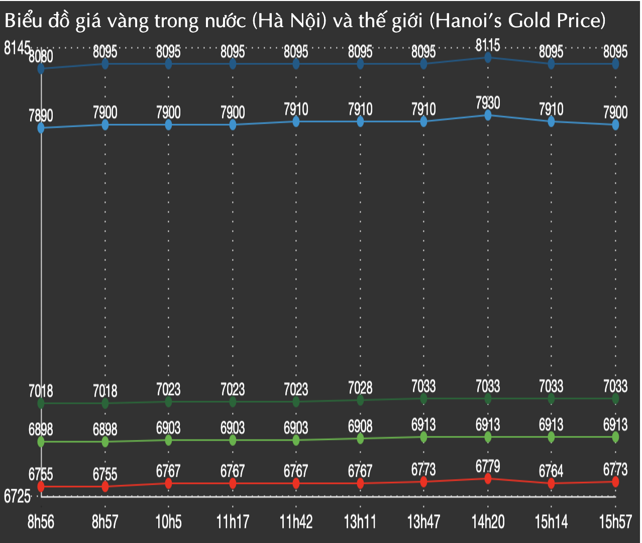 Giá vàng trong nước có hướng đi lên, xuống và giá vàng quốc tế có hướng đi lên, biến động tại từng thời điểm trong ngày.