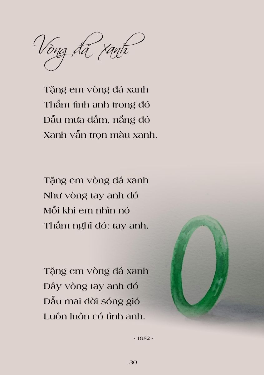 Những vần thơ được chắt chiu từ những điều nhỏ bé, mắt thấy tai nghe trong cuộc sống đời thường. Từng câu thơ chứa đựng các cung bậc cảm xúc của tình yêu – thứ tình yêu chân thành, mộc mạc, giản dị, không hào nhoáng mà sâu lắng, thủy chung: